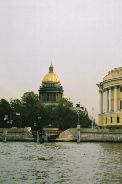Исаакиевский собор (St. Isaac’s Cathedral) as seen from the Нева (Neva) River.